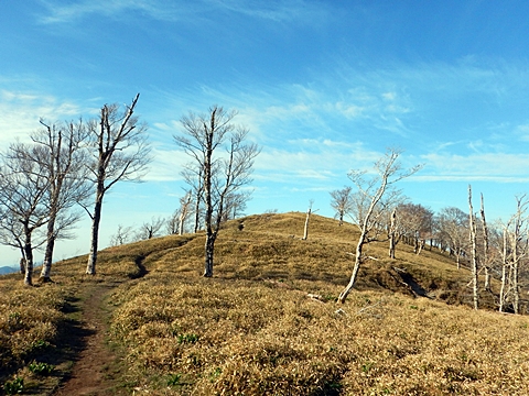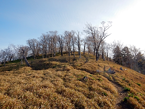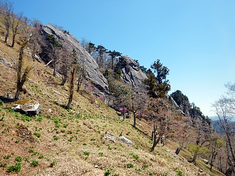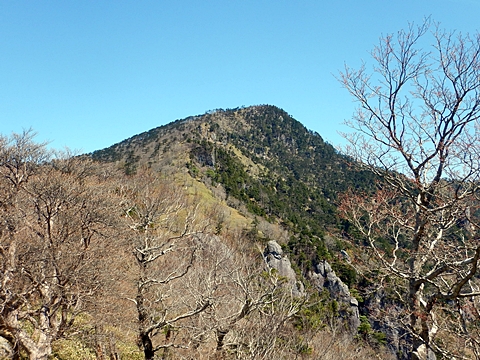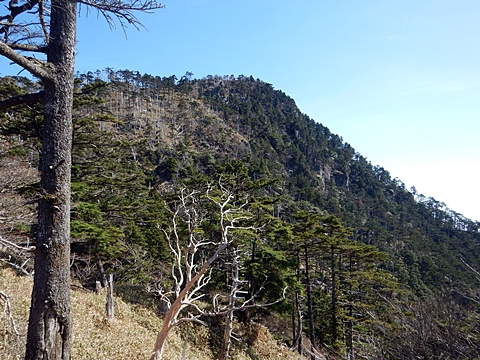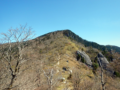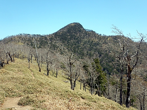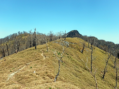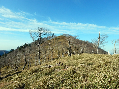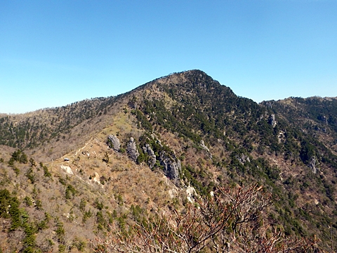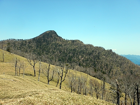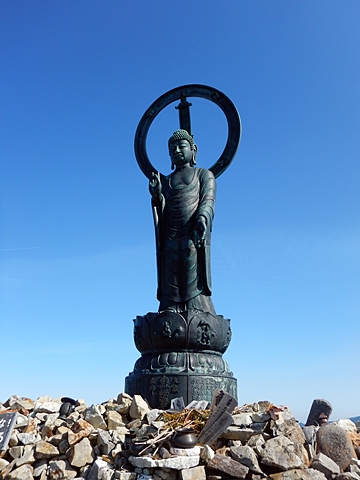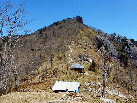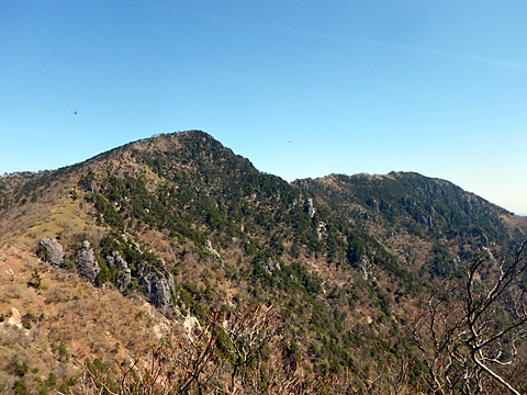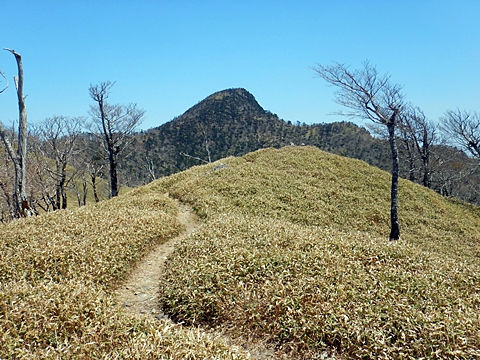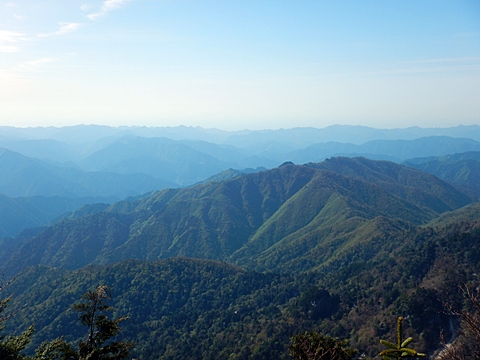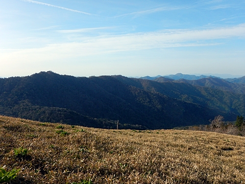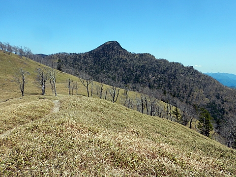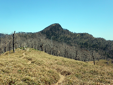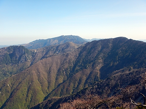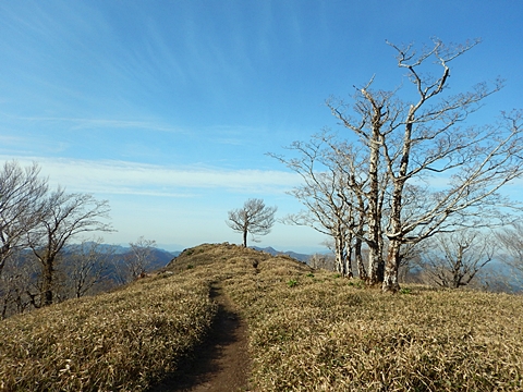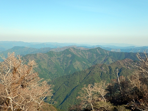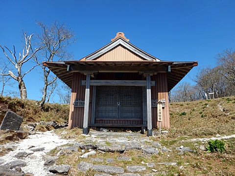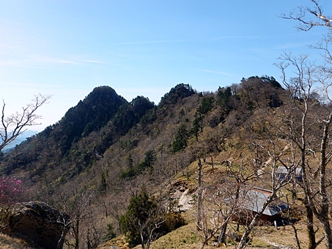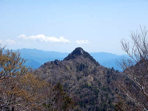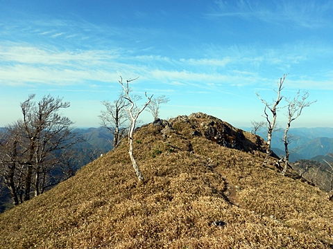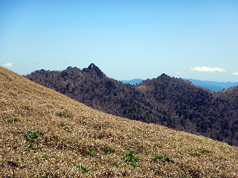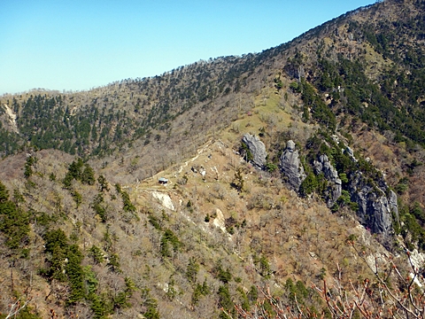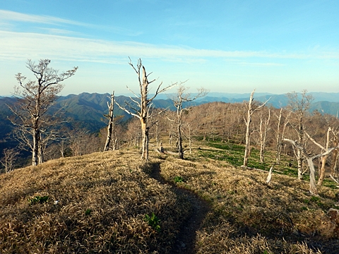 ■連休は大峰山脈の山に登りたくなったが、少し間が空いたため体力に自信がなく、比較的楽に登れそうな釈迦ケ岳を目指すことにした。■国道から車で旭ダムや奥吉野発電所を経て、林道旭線と林道不動木屋線を通り太尾登山口へ向かった。道は基本的に舗装されているものの、国道からとにかく遠く感じた。■太尾登山口には消防車両が数台停まっており、遭難事故があったのか物々しい雰囲気だったが、詳細は不明だった。■太尾登山口には公衆便所もあり整備されているが、すでに多数の車が停まっていたため、少し下の路肩に駐車した。■太尾登山口から入山し、しばらく樹林帯の中を登っていく。やや岩場のようになっている箇所もあり、短いハシゴが設置されている部分もあった。■太尾登山口から20分ほどで標高1434m地点を通過した。■その後は疎林の尾根歩きとなり、標高1434m地点から20分ほどで標高1465m地点を通過した。太尾登山口の2kmほど手前に「釈迦ケ岳登山口」と書かれた標柱と「この先、危険 通行止め」と書かれた貼紙があったが、その旧登山口からの道が左から合流した。太尾登山口方面には「← 十津川村 旭」「← 太尾登山口」、旧登山口方面には「旭・不動木屋谷林道 →」と書かれた道標があった。旧登山道は途中に山抜けがあるらしく、廃道になっているようである。■標高1465m地点を過ぎると、眺望の良い草原状の尾根歩きとなる。中八人山や笠捨山方面へ続く大峰南部の稜線、奥高野などの眺めがすばらしい。■やがて行く手に釈迦ケ岳が姿を現し、標高1465m地点から35分ほどで標高1618m地点を通過した。標高1618m地点は吉田ノ森といい、標識があった。■引き続き眺望はすばらしく、釈迦ケ岳や八経ケ岳、大日岳などを望みながらアップダウンのある尾根を進む。■千丈平には小さな池があった。「千丈平 1660m」と書かれた標識を過ぎると「← 釈迦ガ岳」「十津川村 旭 →」と書かれた道標があり、その間から右に深仙宿への道が分岐していた。■分岐から樹林帯に入り10分ほど登ると、大峰奥駈道に合流した。「<大峰奥駈道」「<深仙宿」「太尾登山口>」と書かれた道標があった。■分岐には「釈迦ケ岳山頂 0.3km 5分」「深仙ノ宿 1.3km 30分」と書かれた道標もあったが、実際には分岐から10分ほどで釈迦ケ岳頂上に到着した。■釈迦ケ岳頂上には、釈迦如来像や標識、三角点があった。眺望はすばらしく、孔雀岳や仏生ケ岳を経て八経ケ岳に続く稜線、七面山、中八人山、天狗山や地蔵岳を経て笠捨山方面に続く稜線、遠くは金剛山まで望むことができた。ほとんど追い越されなかったが、すでに多くの登山者が先着していた。■釈迦ケ岳頂上にも消防隊員が数名おり、時折無線で交信していたが、何があったのかは分からなかった。■しばらく眺望を楽しんだ後、分岐まで戻って深仙宿方面へ進んだ。■大峰奥駈道に入ると急に道が悪くなり、笹薮の中を下っていく。逆コースの場合は大変そうに思えた。■分岐から25分ほどで左手に岩壁が現れた。第三十九靡の都津門である。岩壁には小さな岩穴があり、この穴をくぐると極楽に行けると言われているらしい。先着の登山者が岩穴から戻ってきたところだったが、危険と思われ、眺めるだけにした。■都津門から10分ほど下ると、深仙宿に到着した。■深仙宿には、灌頂堂という祠と避難小屋がある。近くの四天岩のそばには行者髭塚の碑や香粧水という水場がある。■深仙宿から大日岳は遠そうに見えたが、せっかくなので往復することにした。■深仙宿から右手に聖天ノ森を見ながら登っていく。■途中に「太古の辻・前鬼 →」「← 大日岳(行場)」と書かれた道標があり、左に大日岳への道が分岐する。大日岳方面には「この先、修験道の行場です。岩場・鎖場、道中は大変危険です! 修行以外の方はお入りになることをお勧めしません。修行される方は、一切自己責任にてご修行下さい。大峯行者」と書かれていたが、そのまま大日岳へ向かった。■正面に大日岳が現れ「行場 通行禁止」「修験者の行場です 一般登山者は 迂回路を利用してください 下北山村」と書かれた看板があった。よく見ると右側に「大日岳迂回路」と書かれた道標があり、これに従って迂回路を登った。■ロープの付いた岩場を登り切ると、大日岳頂上に到着した。迂回路は細くてすれ違いは困難だが、慎重に登れば問題ない。■大日岳頂上には標識と大日如来像があり、片隅から釈迦ケ岳や深仙宿を望むことができた。■後から何人か登ってきたが、頂上は狭いため、早々に辞して深仙宿へ戻った。■深仙宿で少し休んだ後、釈迦ケ岳を巻く道に入り、千丈平へ出た。巻道とはいえ登り主体であり、疲れた体にはやや堪えた。■千丈平から元来た道を戻り、太尾登山口へ下山した。後方から消防隊員の集団がやってきたが、速めのペースを維持して太尾登山口に先着した。■太尾登山口にはまだ消防車両がいたが、問題は解決したのか片付けをしているところだった